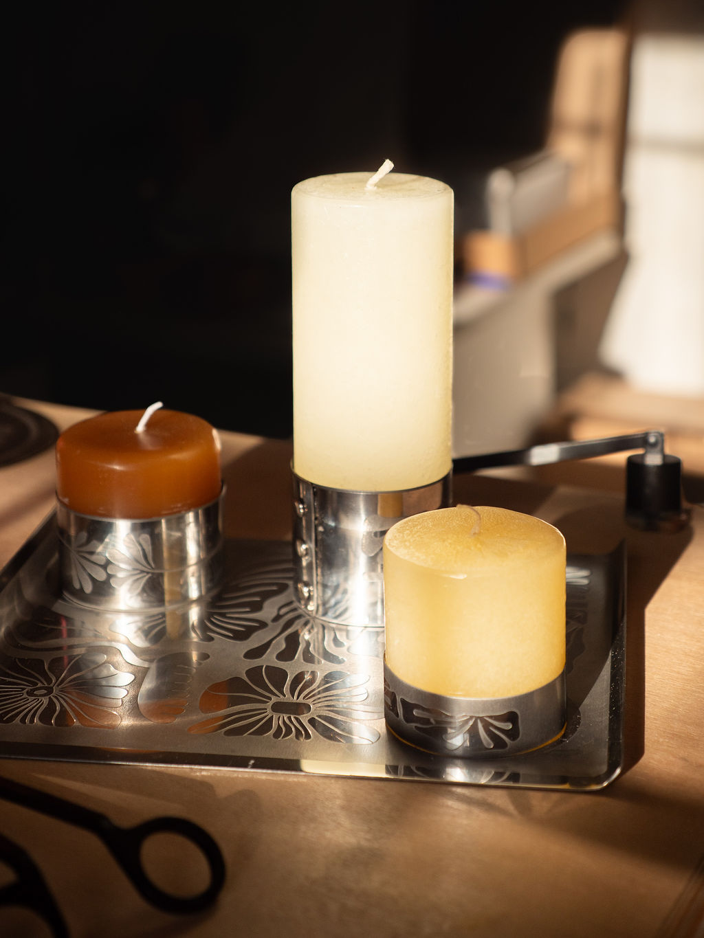 Artesanía que Ilumina combina tradición y creatividad para transformar la luz en diseño. Cada vela artesanal, con base metálica y madera, es elaborada con cuidado y detalle, ofreciendo un objeto funcional que también es una pieza decorativa. Creaciones que iluminan espacios y momentos, aportando calidez, estilo y un toque único a tu entorno.